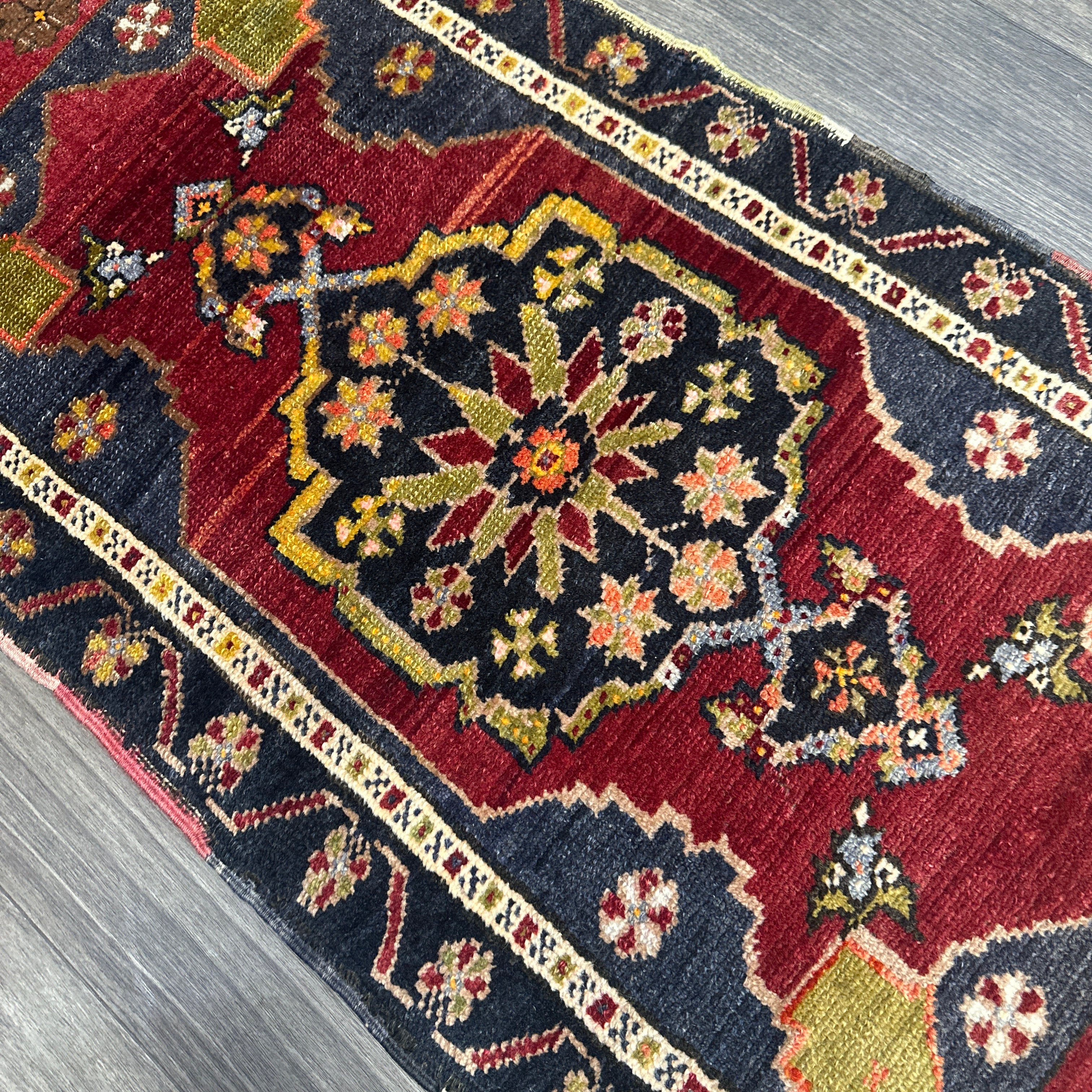 110cmx53cm年代トルコ絨毯手織り絨毯ヴィンテージラグ