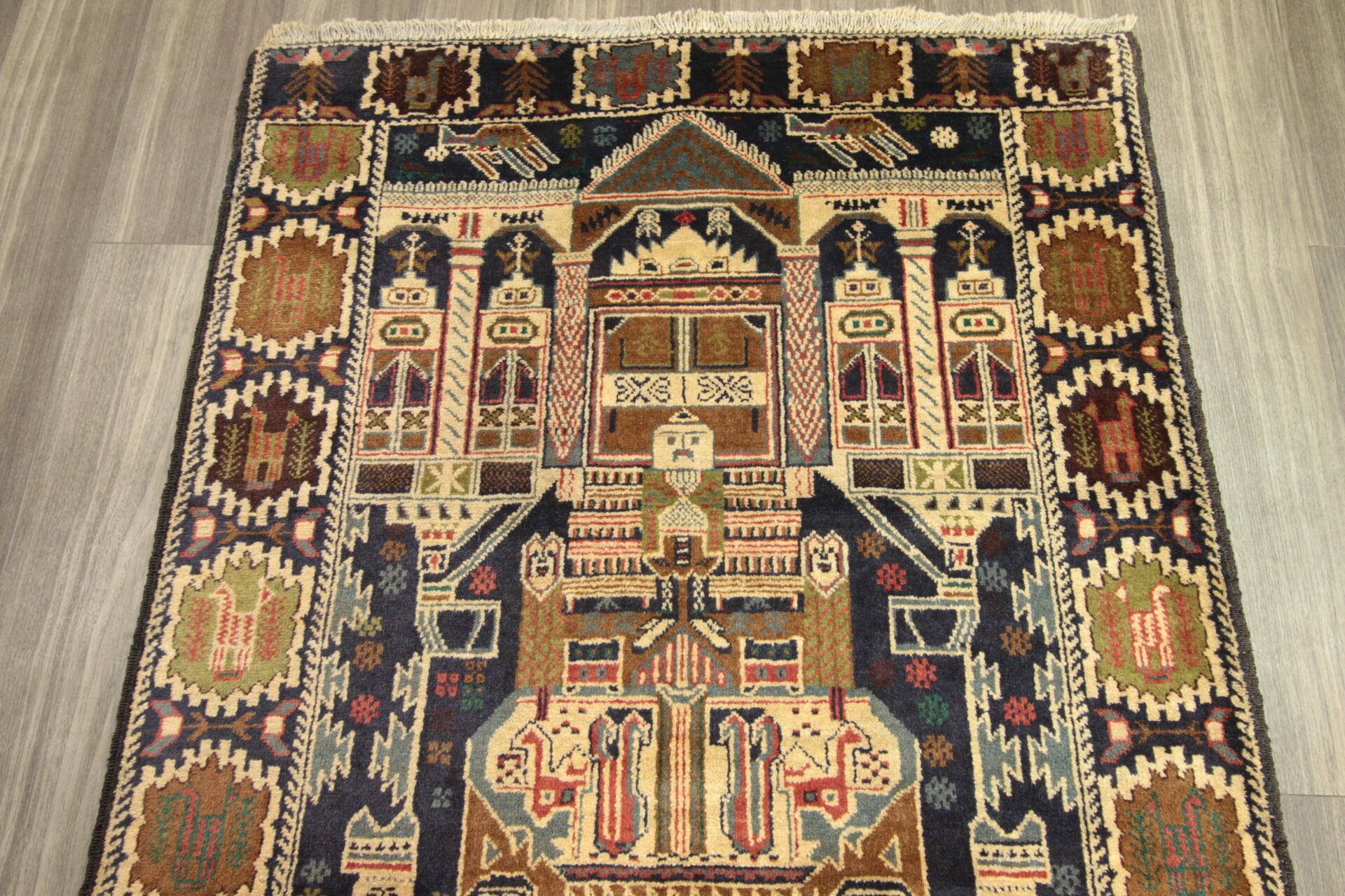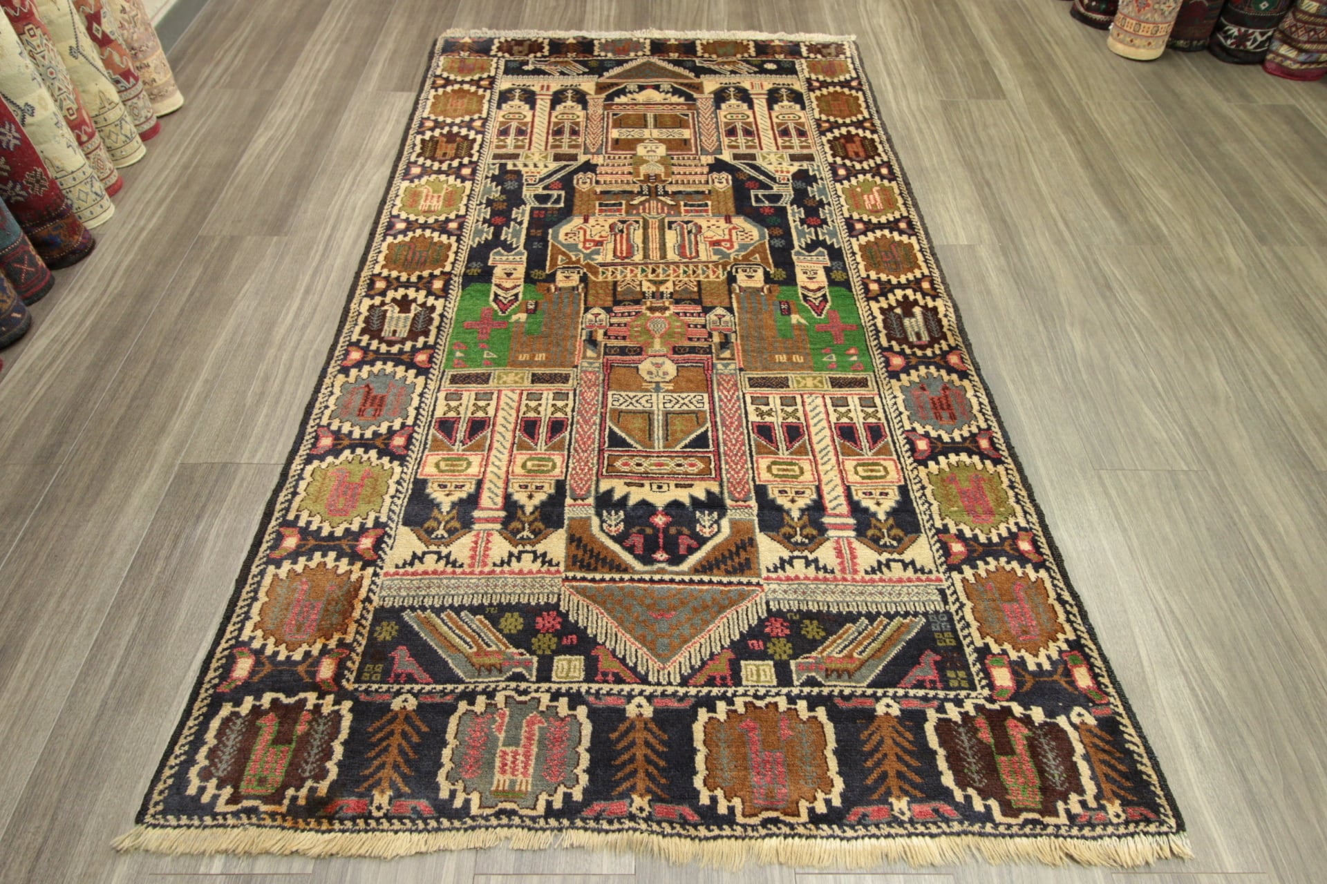 この絨毯は一般的な左右対称のデザインではなく、一方向で使用するために織られたワンウェイの絨毯です。